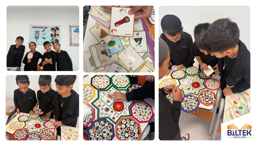 Biltek Okulları ilkokul öğrencileri, Kur’an-ı Kerim dersinde harfleri eğlenerek öğrenmeye devam ediyor. Öğrenciler, “Kur’an’dan Kart Oyunu” ve “Çark Çevirmece” gibi etkinliklerle Kur’an harflerini pekiştirirken aynı zamanda takım çalışması, dikkat ve hızlı düşünme becerilerini de geliştirdiler.