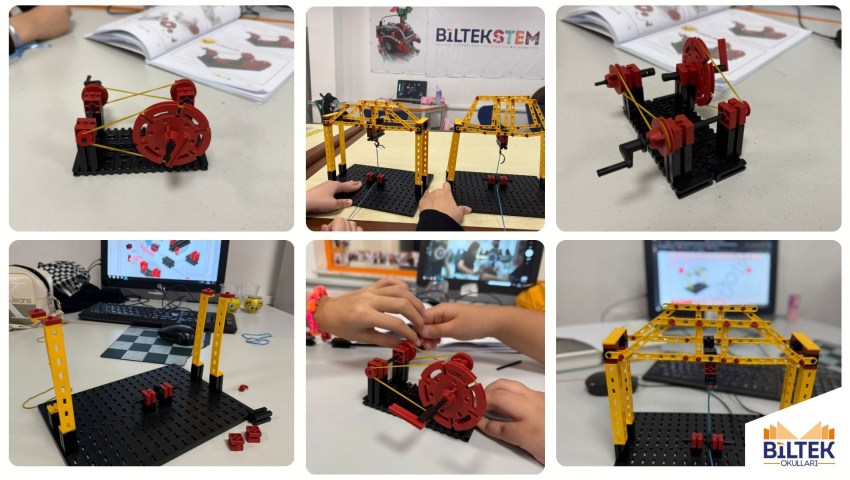 Öğrencilerimiz STEM dersinde teorik bilgilerini uygulamaya dönüştürdü. 6B sınıfı kasnak modelleriyle hareketi keşfederken, 7C sınıfı köprü tasarımıyla denge ve dayanıklılığı inceledi.