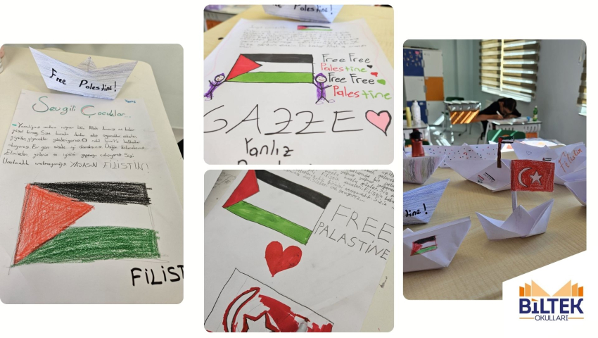 Özel Ankara Biltek Ortaokulu 6.sınıf öğrencileri," Sumud Filosuna ve Gazze'ye Destek" etkinliği kapsamında kaleme aldıkları mektupları hazırladıkları küçük gemilere yükleyerek anlamlı bir çalışmaya imza attı.