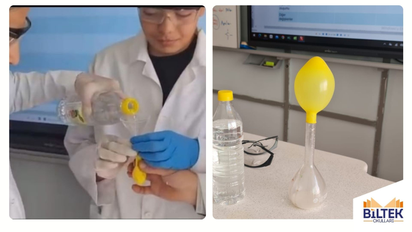 ÖZEL ANKARA BİLTEK ANADOLU LİSESİ'NDE KİMYA DERSİ KÖPÜRDÜ