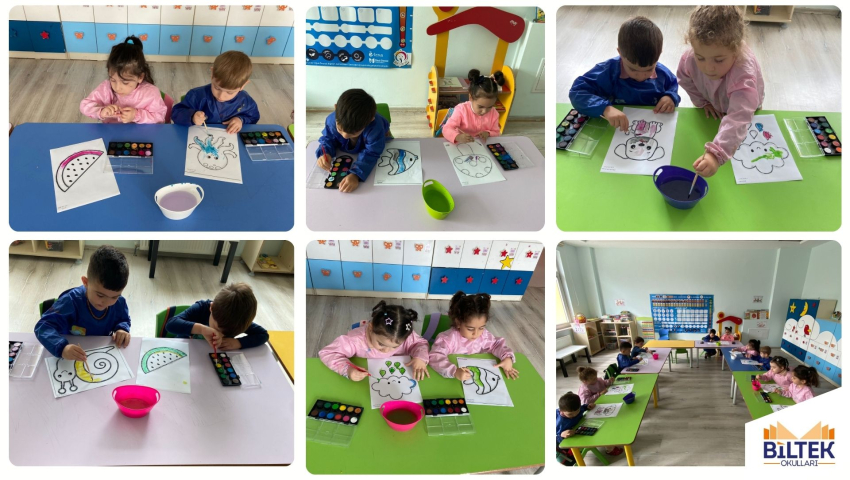 Sulu boya ile yapılan bu keyifli çalışmada öğrencilerimiz, hem eğlenceli vakit geçirdiler hem de ince motor becerilerini geliştirme fırsatı buldular.